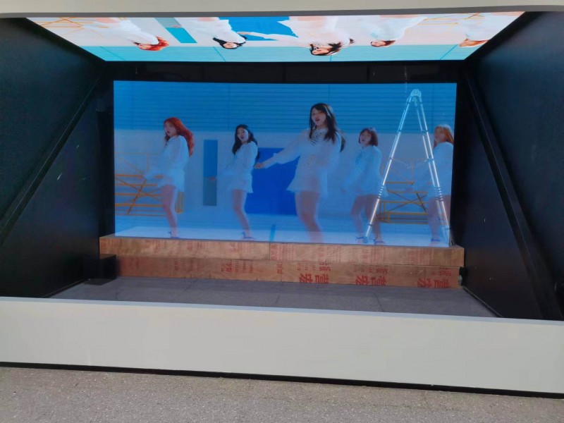 采用45°斜置反射架构,通过顶部或底部光源与多媒体计算机的协同运作,打造悬浮式立体影像。配合音响设备,构建声光电一体化的沉浸式空间。